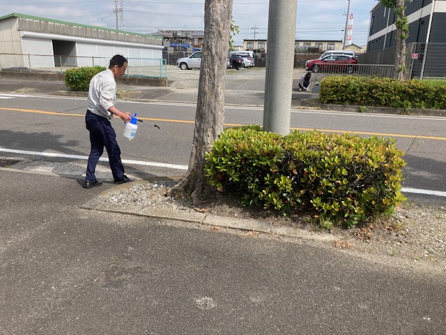本日も弊社の部長が、社屋前の道路端等に生えている