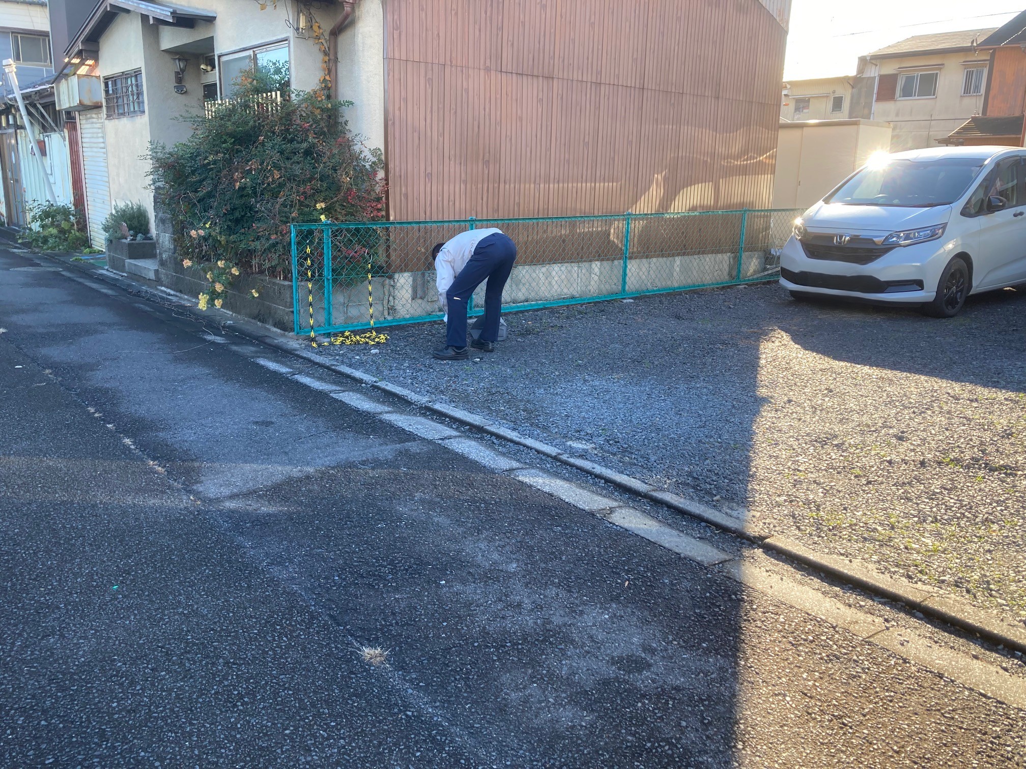 引き続き、側溝の清掃と弊社の駐車場の