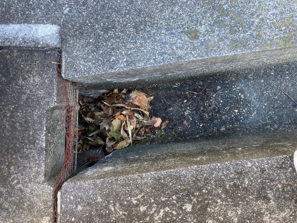 側溝の入口が少々枯葉で