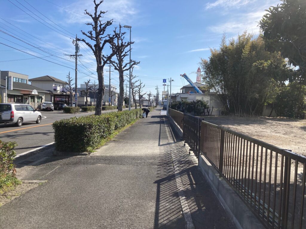 本日も社屋前の歩道と車道の清掃でしたが