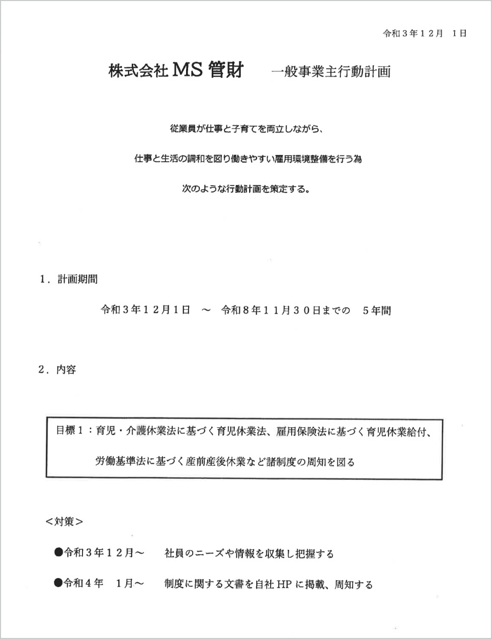 一般事業主行動計画